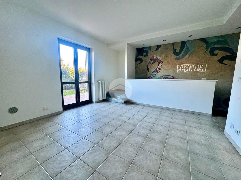 L’ingresso conduce direttamente alla luminosa zona living con cucina a vista, ambiente accogliente e ben organizzato.