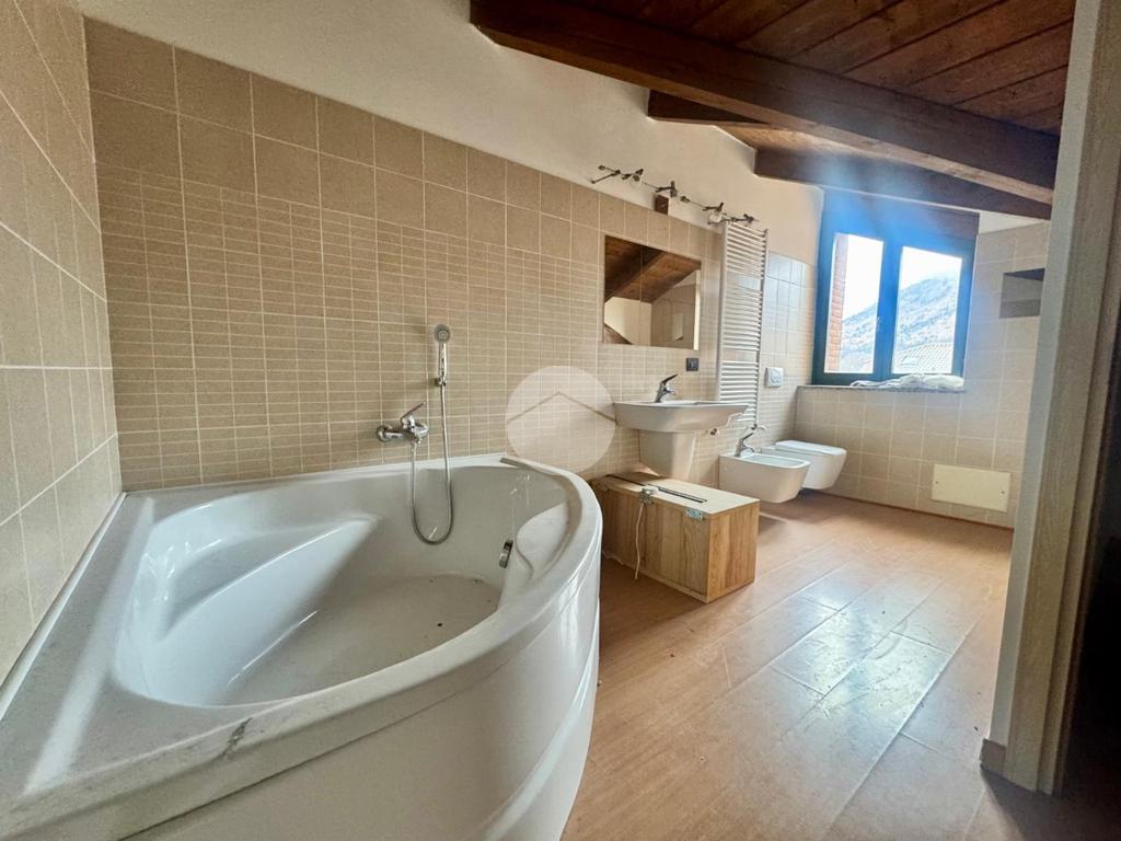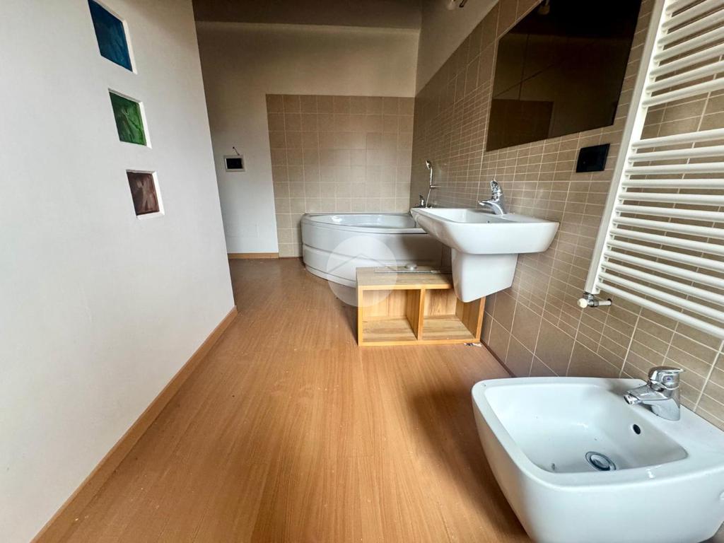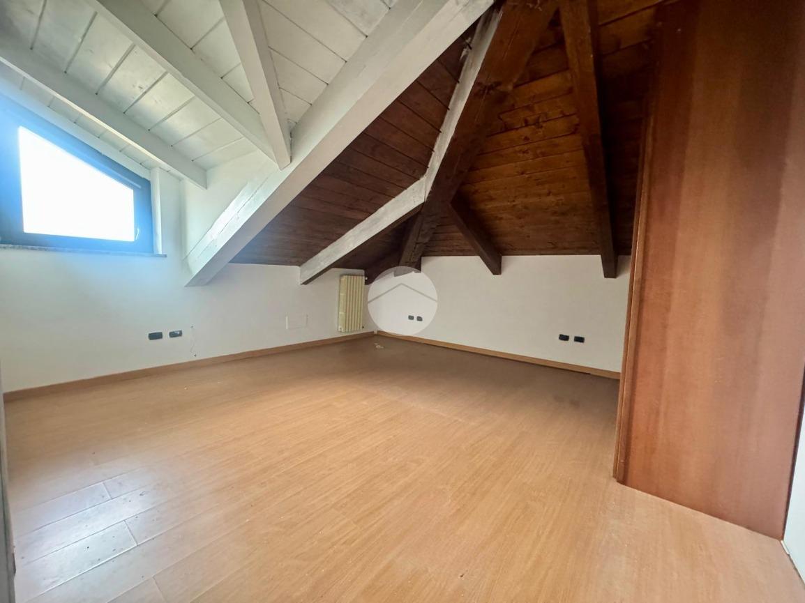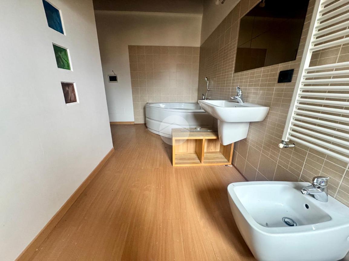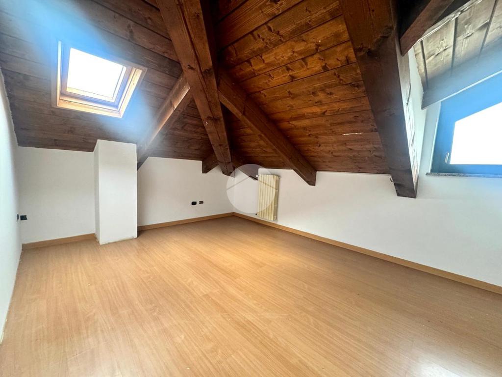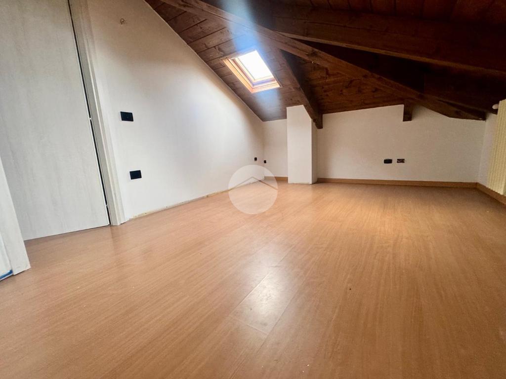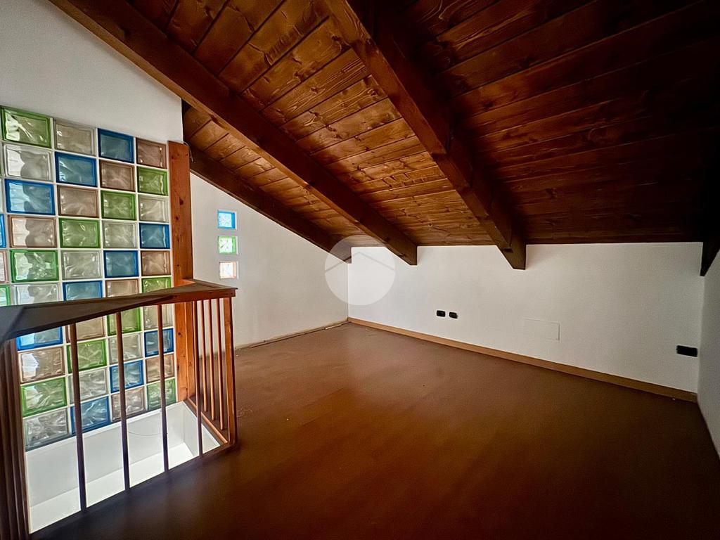 Il disimpegno centrale conduce alla cucina abitabile e al bagno finestrato con box doccia. Una comoda scala interna accompagna al piano mansardato, dove si sviluppa la zona notte composta da due camere da letto matrimoniali, una funzionale zona studio e un secondo bagno dotato di vasca idromassaggio.