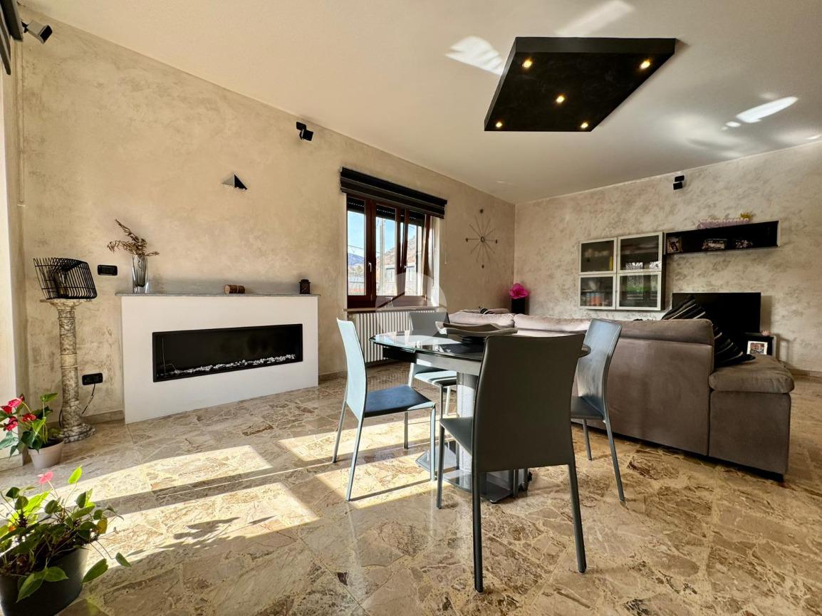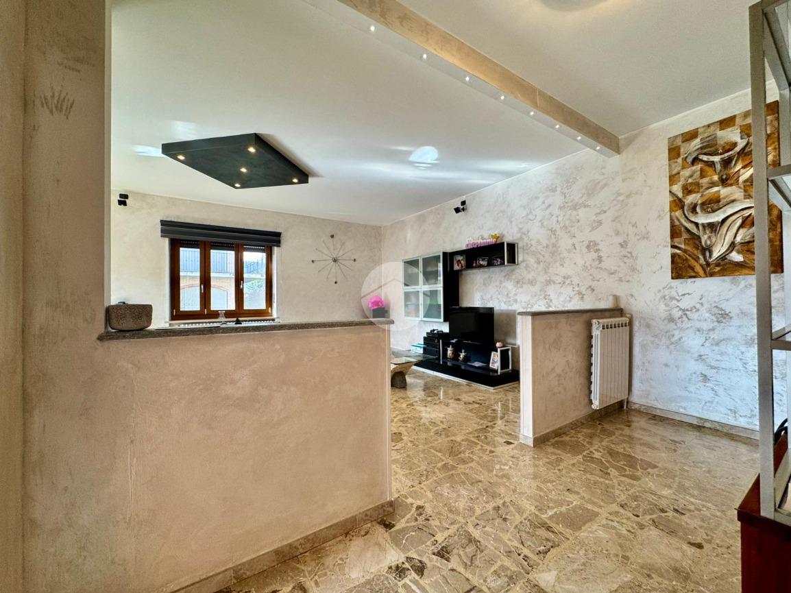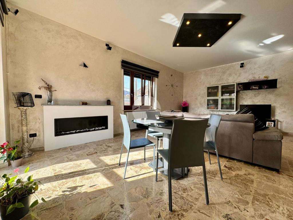 L’ingresso introduce in un magnifico salone doppio, luminoso grazie all’ottima esposizione, impreziosito da un elegante camino a bioetanolo che dona atmosfera e carattere all’ambiente.