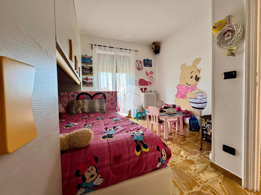La zona notte è composta da due camere da letto confortevoli e ben dimensionate, entrambe dotate di balcone privato che garantisce luminosità e uno spazio esterno riservato. Il bagno, rifinito con gusto contemporaneo, è completo di box doccia e materiali di qualità.