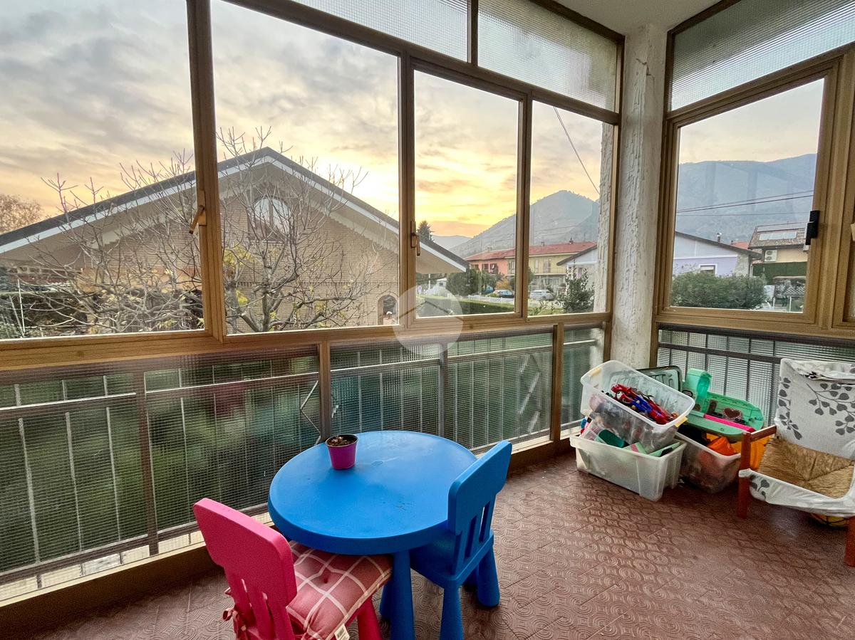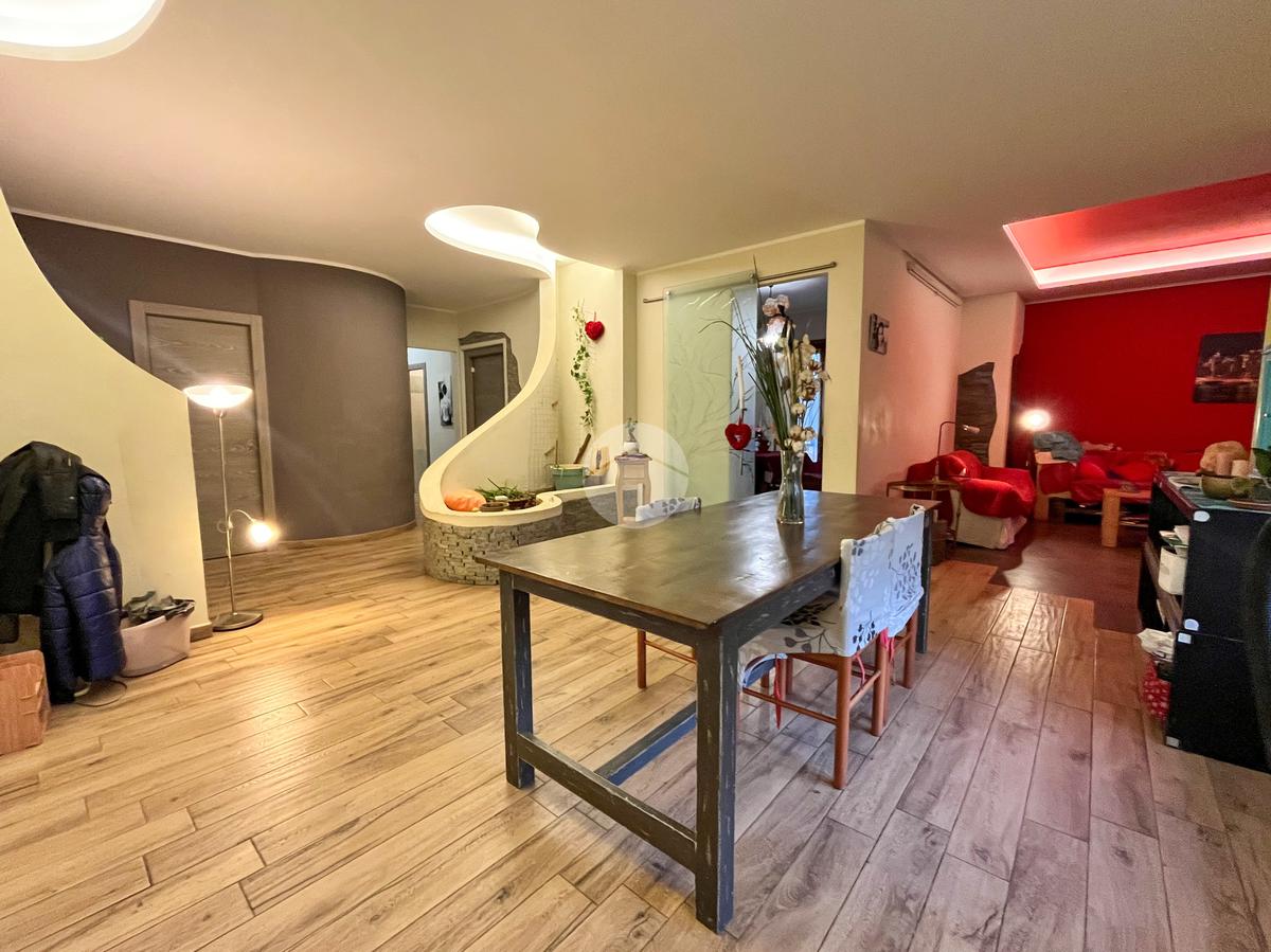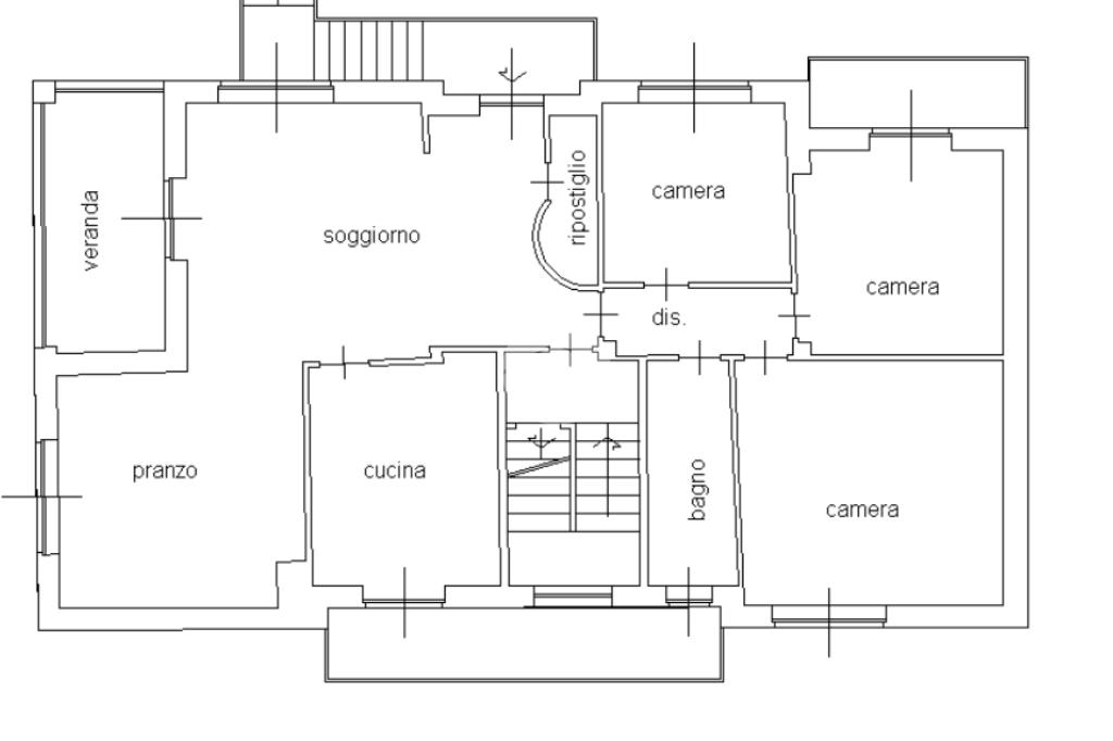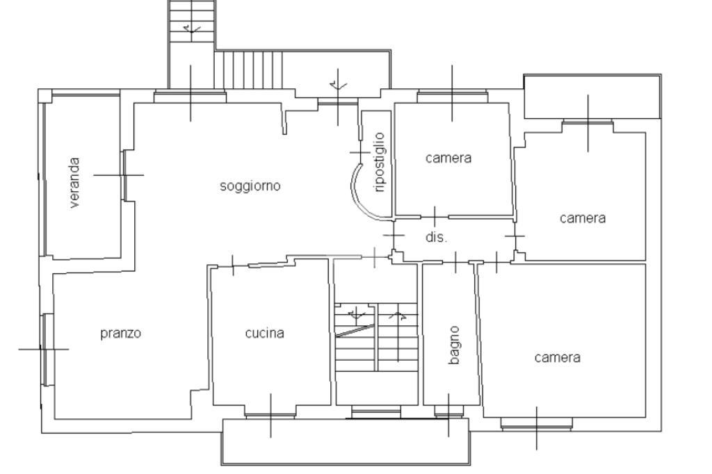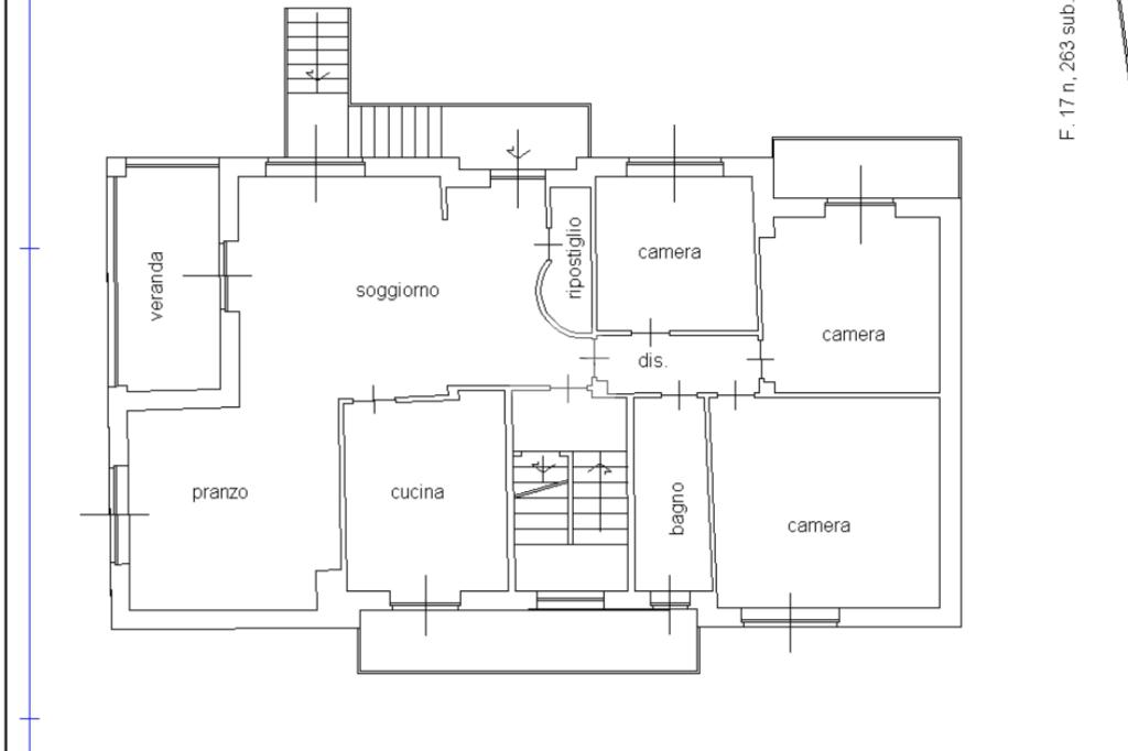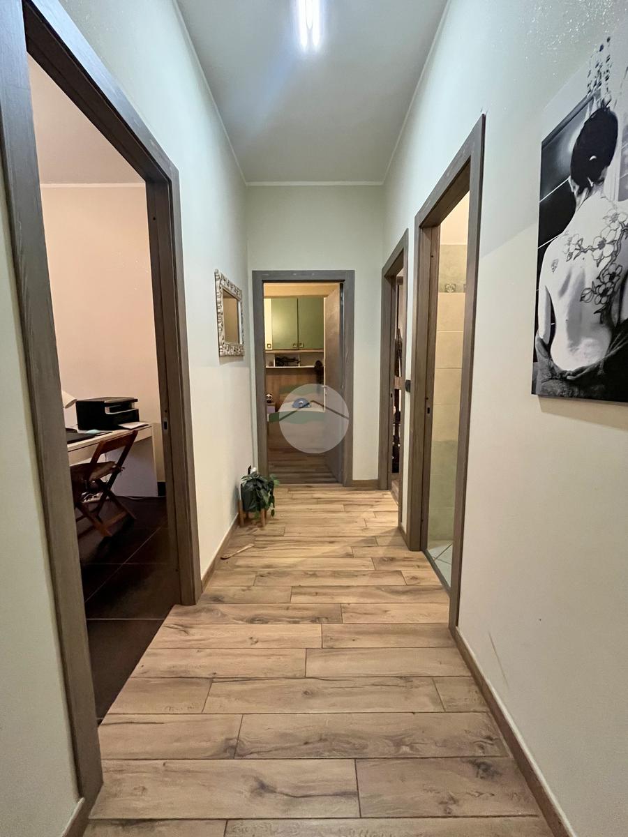 Dal vano scala esterno ed indipendente, si accede all'ingresso molto luminoso che richiama le linee tondeggianti dei led nel soffitto, la sala da pranzo, la cucina abitabile, il soggiorno spazioso ed un balcone verandato. Il corridoio centrale conduce alla zona notte composta da tre comode camere da letto ed il bagno con la doccia.