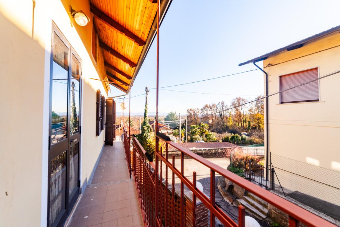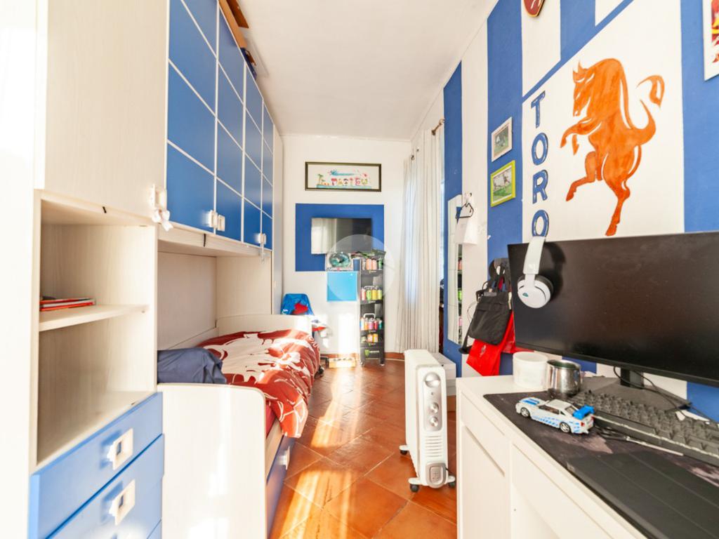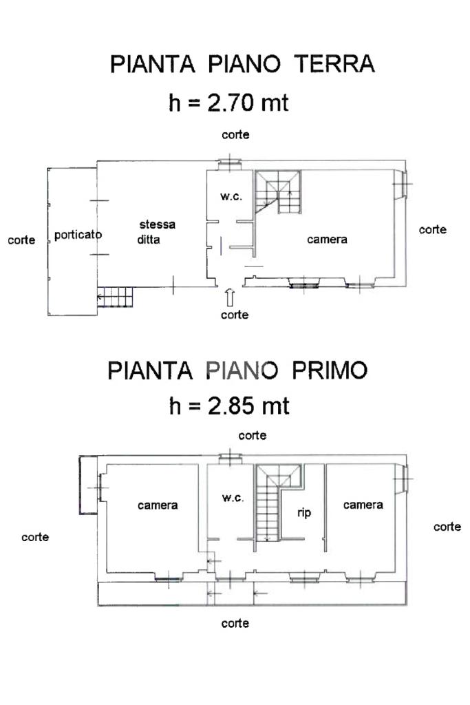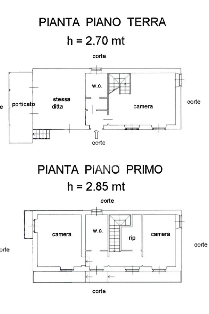 Dal vano scala centrale si sale al piano superiore, dove si trovano un salottino, il secondo bagno con vasca e due camere da letto, entrambe affacciate su un balcone esposto a Sud, con vista aperta e molto gradevole.