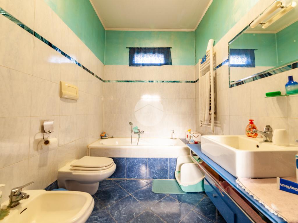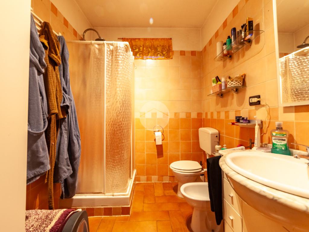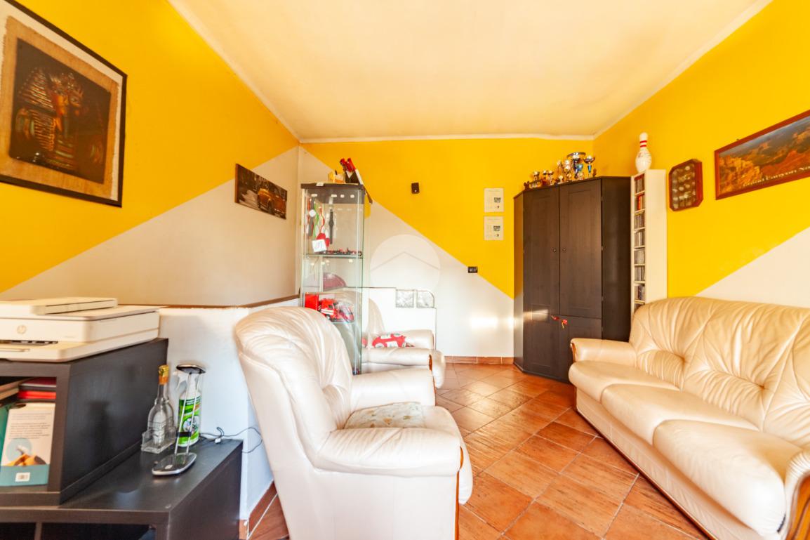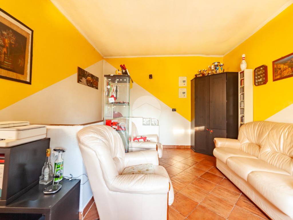 Dal vano scala centrale si sale al piano superiore, dove si trovano un salottino, il secondo bagno con vasca e due camere da letto, entrambe affacciate su un balcone esposto a Sud, con vista aperta e molto gradevole.