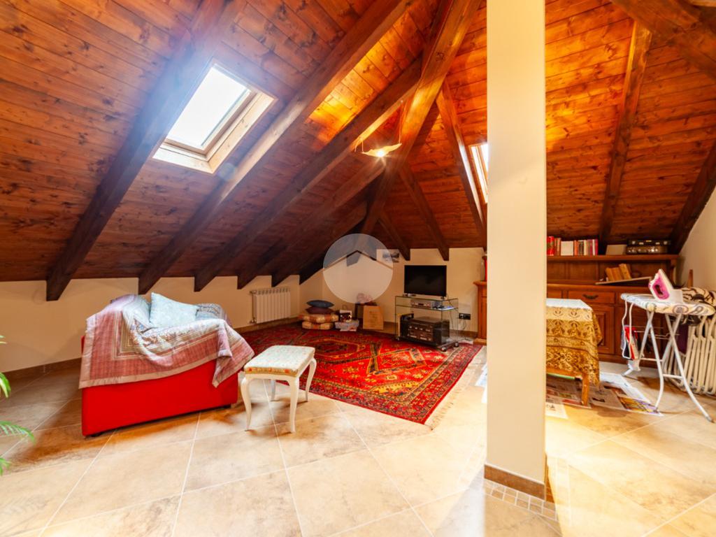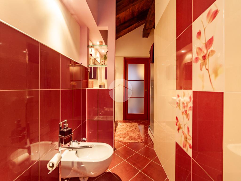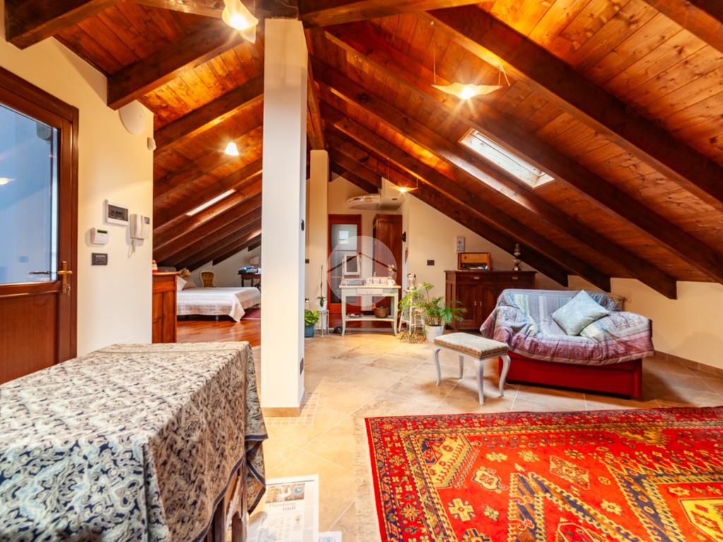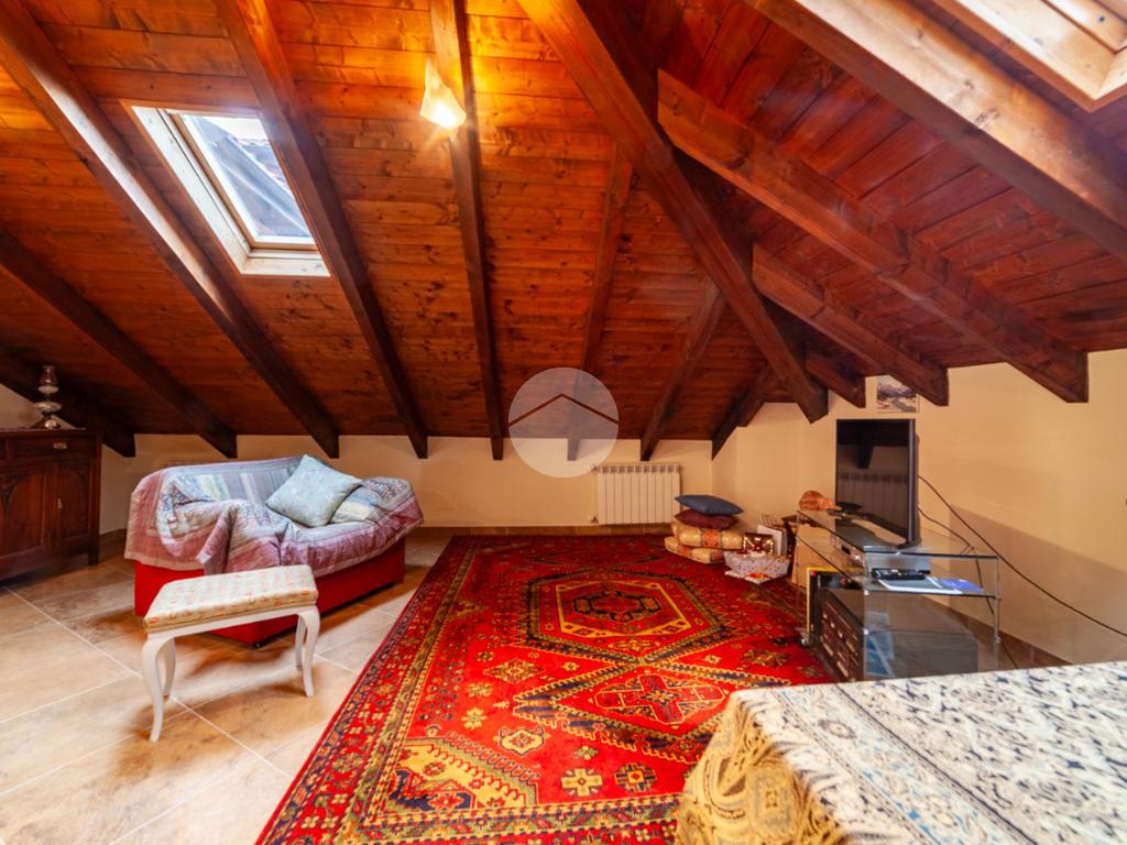 Il livello superiore, mansardato, accoglie un grande ambiente open space con bagno, attualmente utilizzato come ampia camera, con la possibilità di ricavare due camere distinte in base alle esigenze.