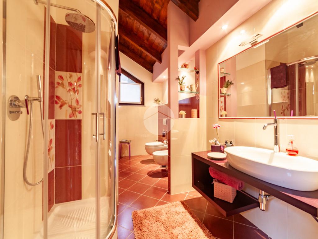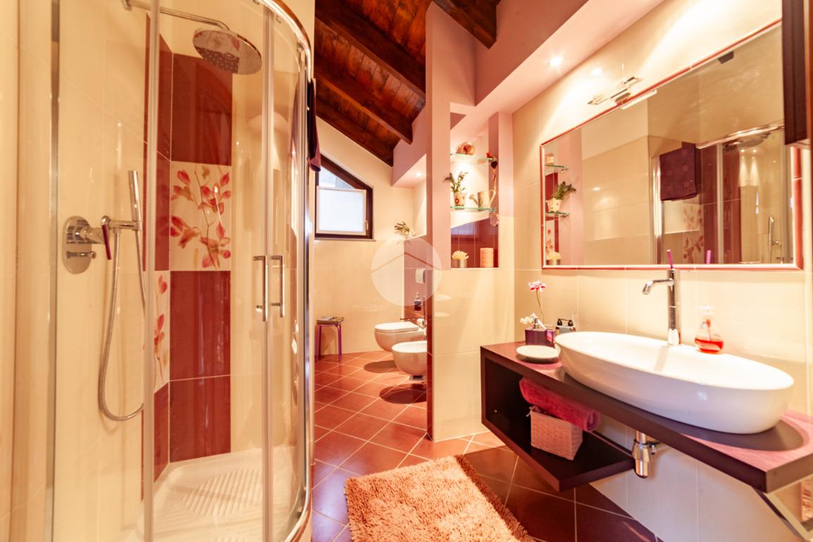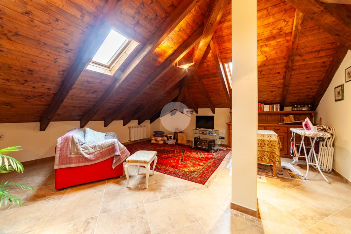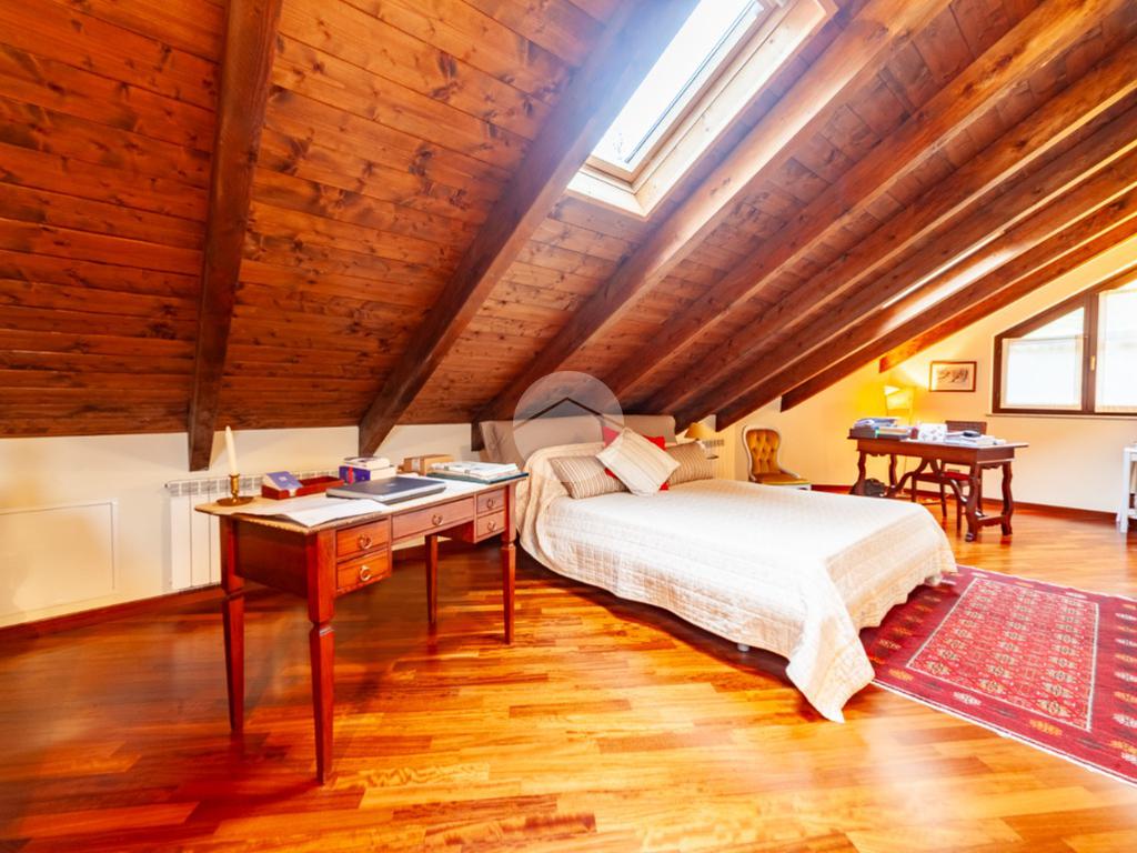 Il livello superiore, mansardato, accoglie un grande ambiente open space con bagno, attualmente utilizzato come ampia camera, con la possibilità di ricavare due camere distinte in base alle esigenze.