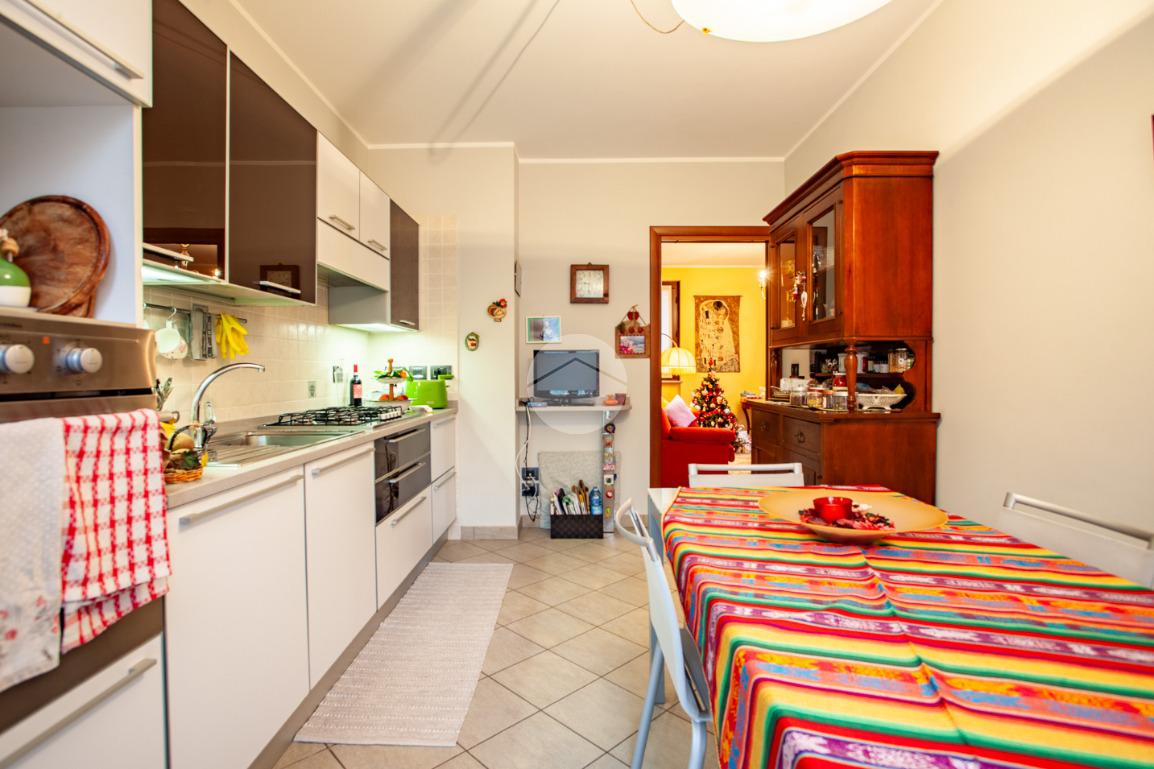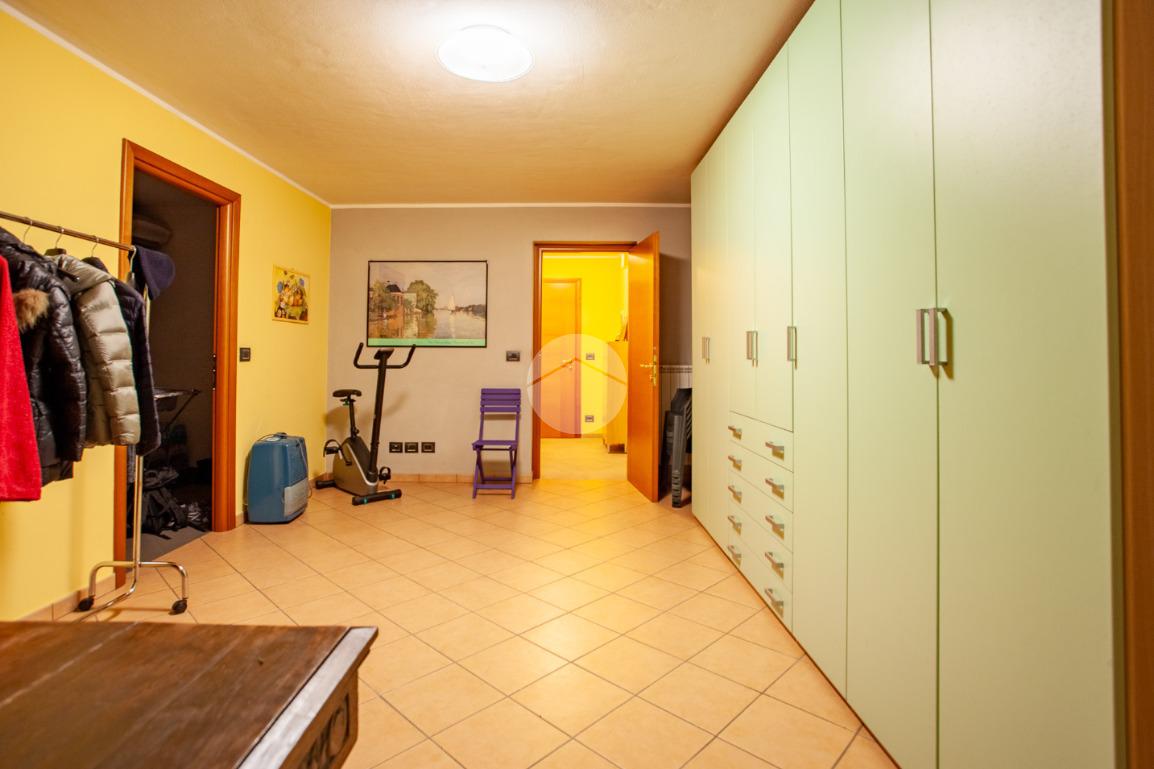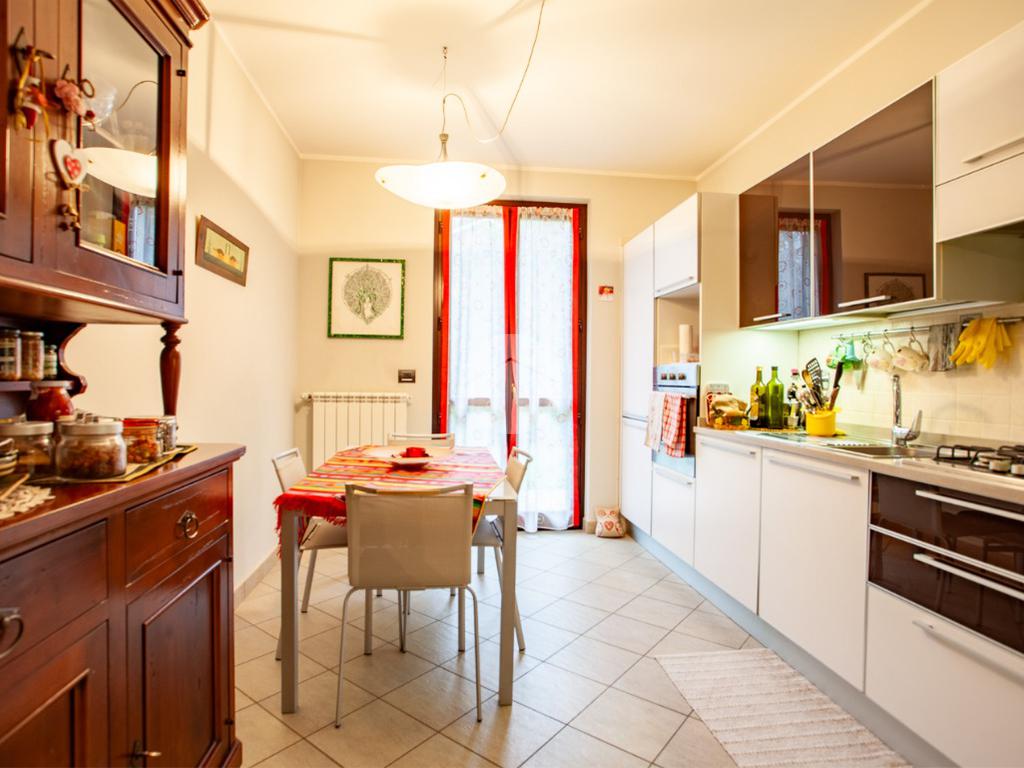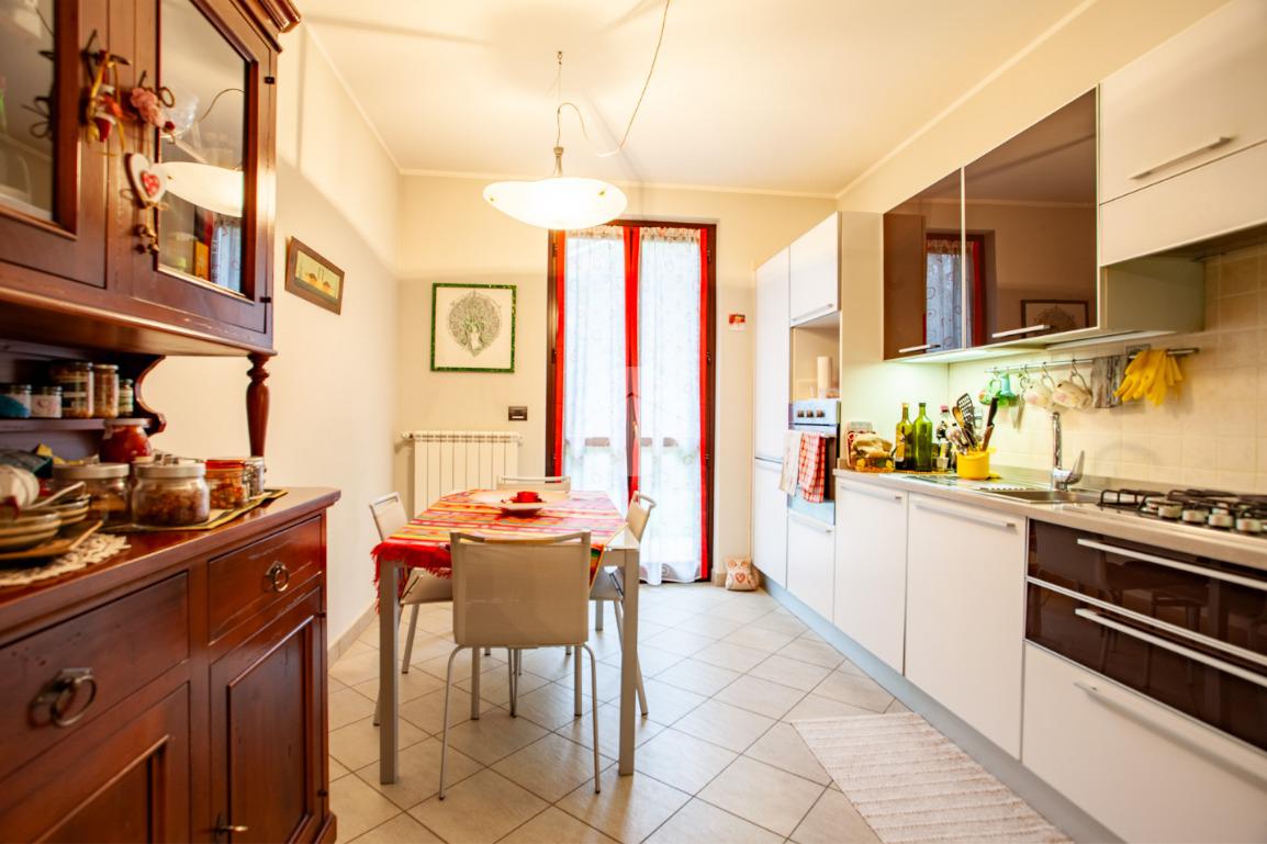 La cucina è abitabile e consente l’accesso diretto al giardino privato, ideale per momenti di convivialità all’aperto. Completano il piano la camera matrimoniale con ampia cabina armadio ed il bagno.