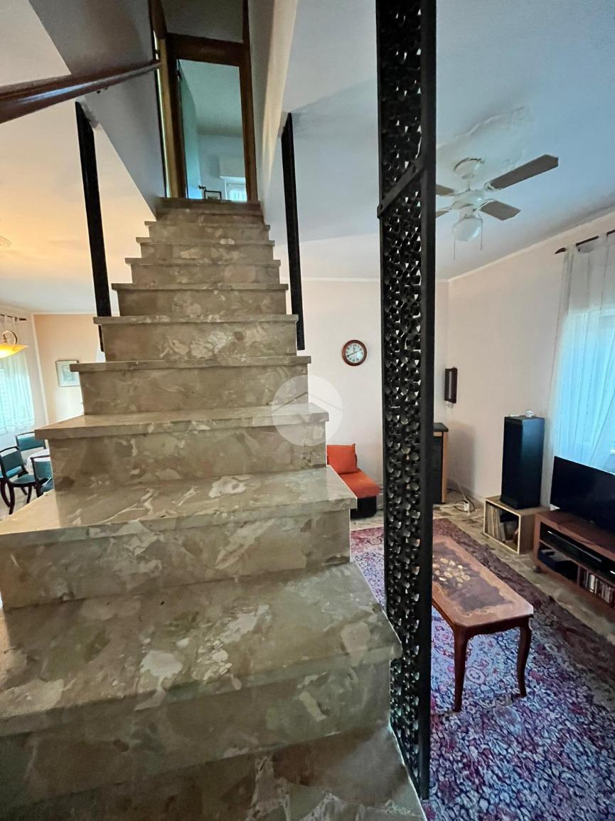 Una scala interna in marmo conduce al piano superiore, dove si trovano due camerette, una camera matrimoniale, una pratica zona lavanderia e un bagno con vasca.