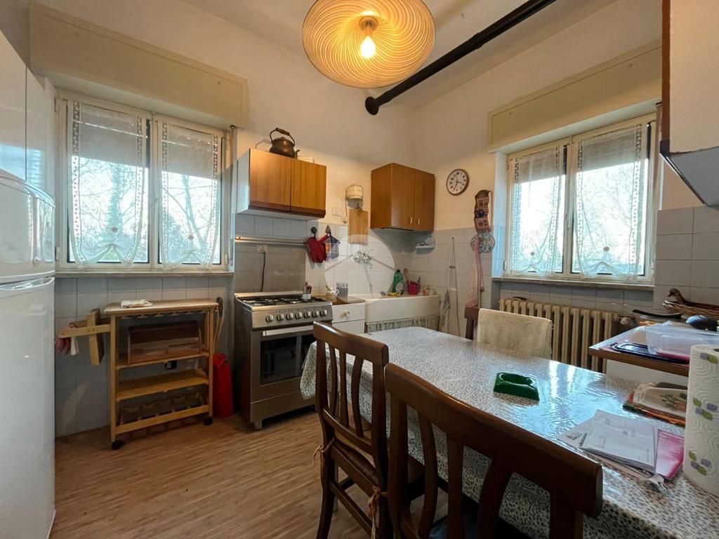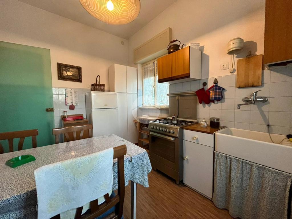 La zona giorno prosegue con una cucina abitabile, funzionale e ben integrata con il resto della casa.