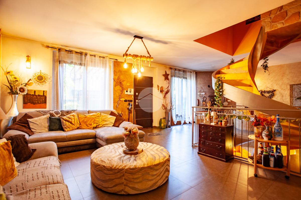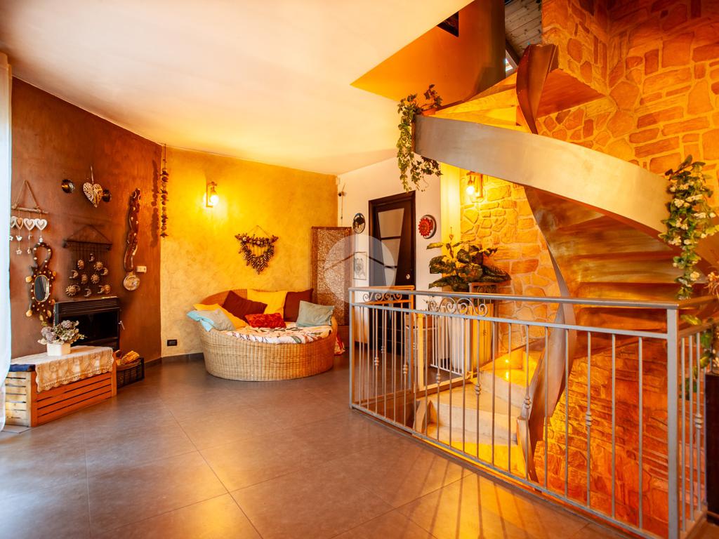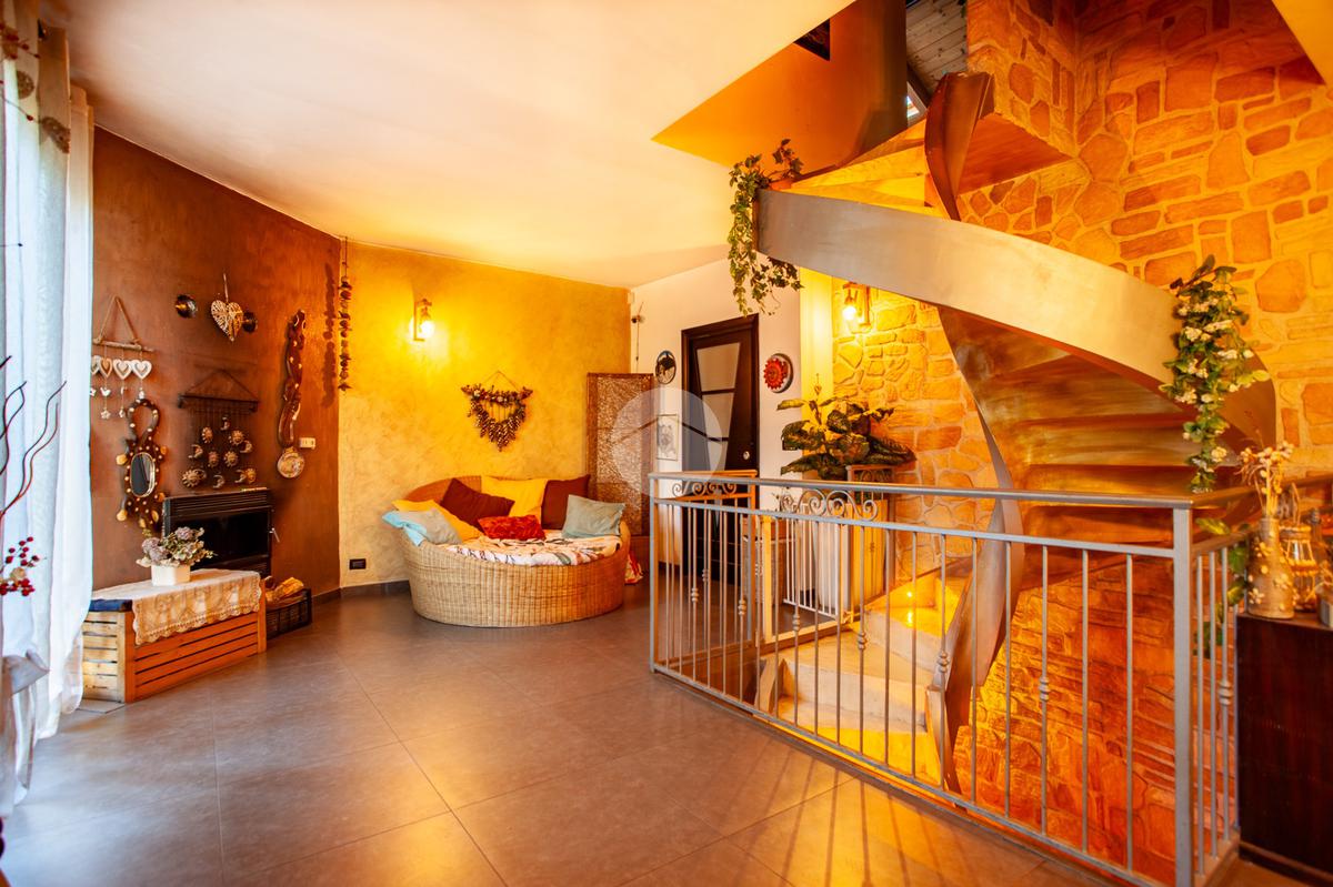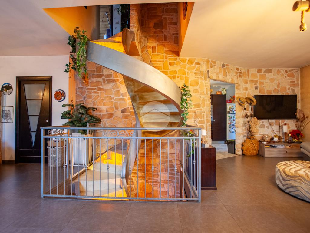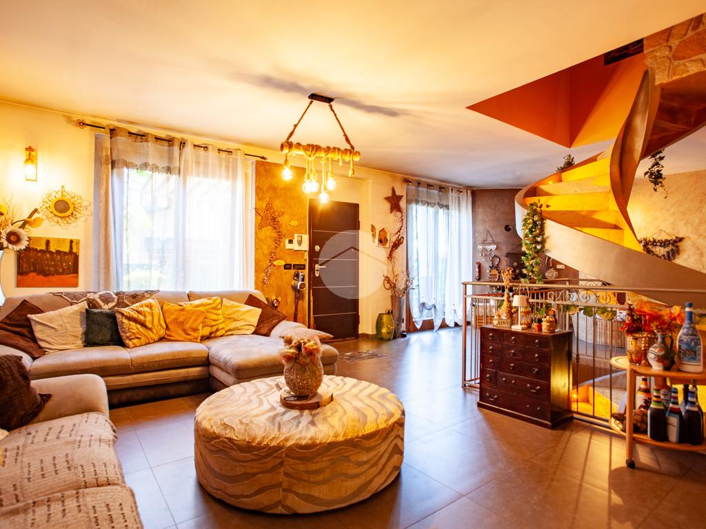L’ingresso conduce a un luminoso soggiorno doppio, valorizzato da una raffinata scala a vista e da un suggestivo camino che dona calore e personalità all’ambiente. La zona giorno è completata da una cucina abitabile di generose dimensioni e da un comodo bagno di servizio. Dal living e dalla cucina si accede direttamente allo spazio esterno, composto da un giardino privato e da un’ampia area porticata, ideale per vivere momenti all’aperto in totale relax.