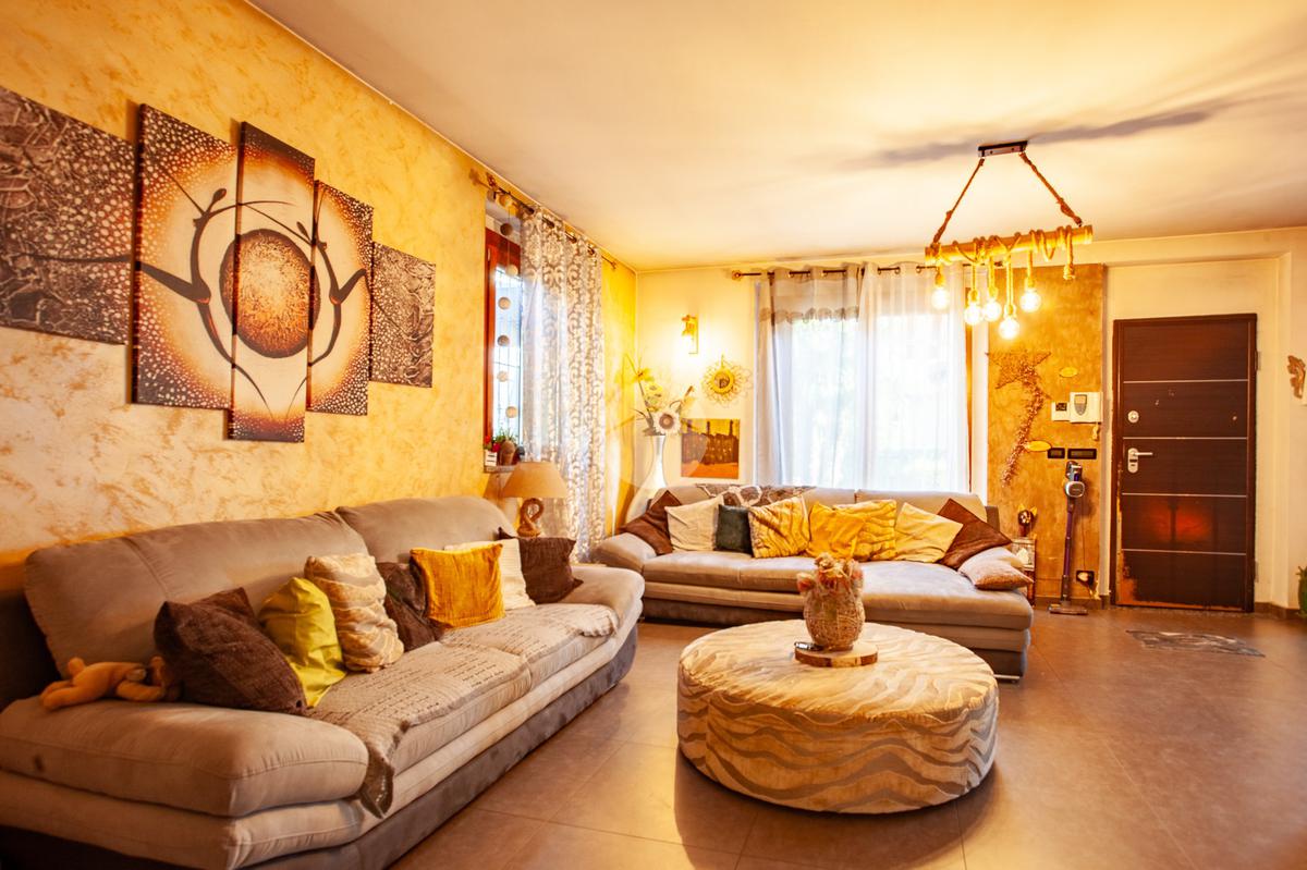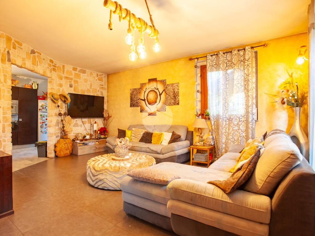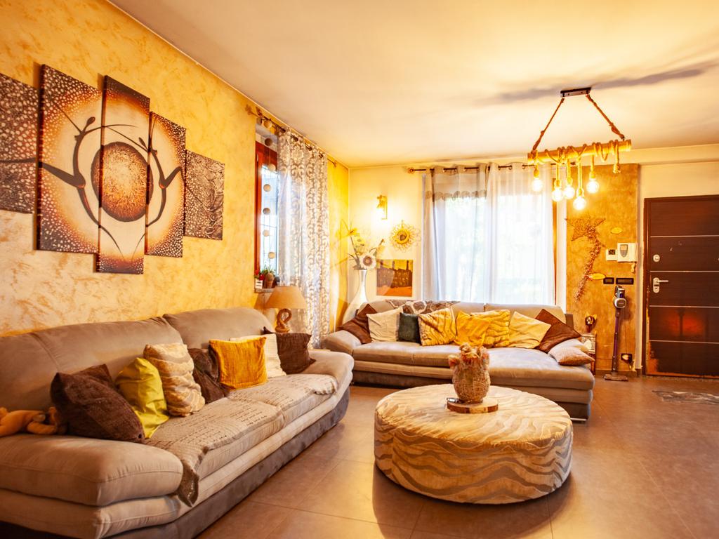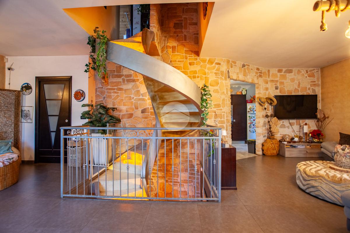 L’ingresso conduce a un luminoso soggiorno doppio, valorizzato da una raffinata scala a vista e da un suggestivo camino che dona calore e personalità all’ambiente. La zona giorno è completata da una cucina abitabile di generose dimensioni e da un comodo bagno di servizio. Dal living e dalla cucina si accede direttamente allo spazio esterno, composto da un giardino privato e da un’ampia area porticata, ideale per vivere momenti all’aperto in totale relax.