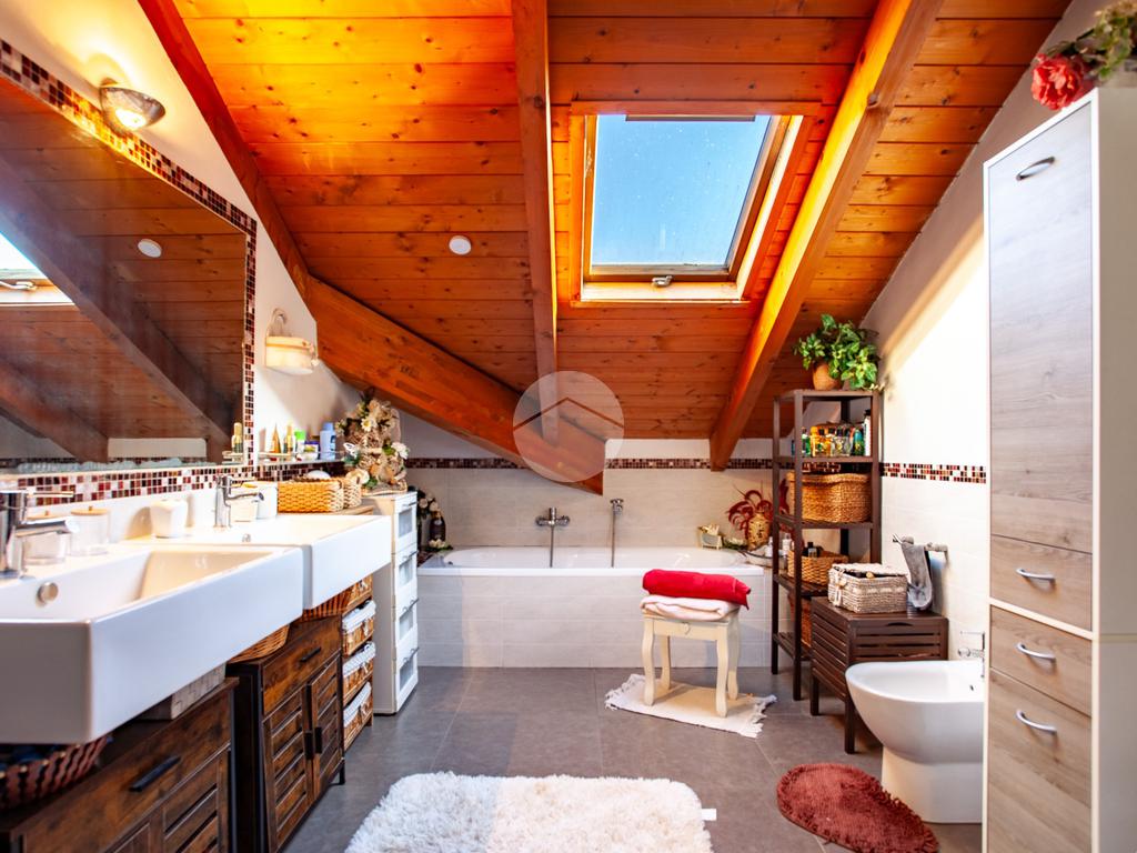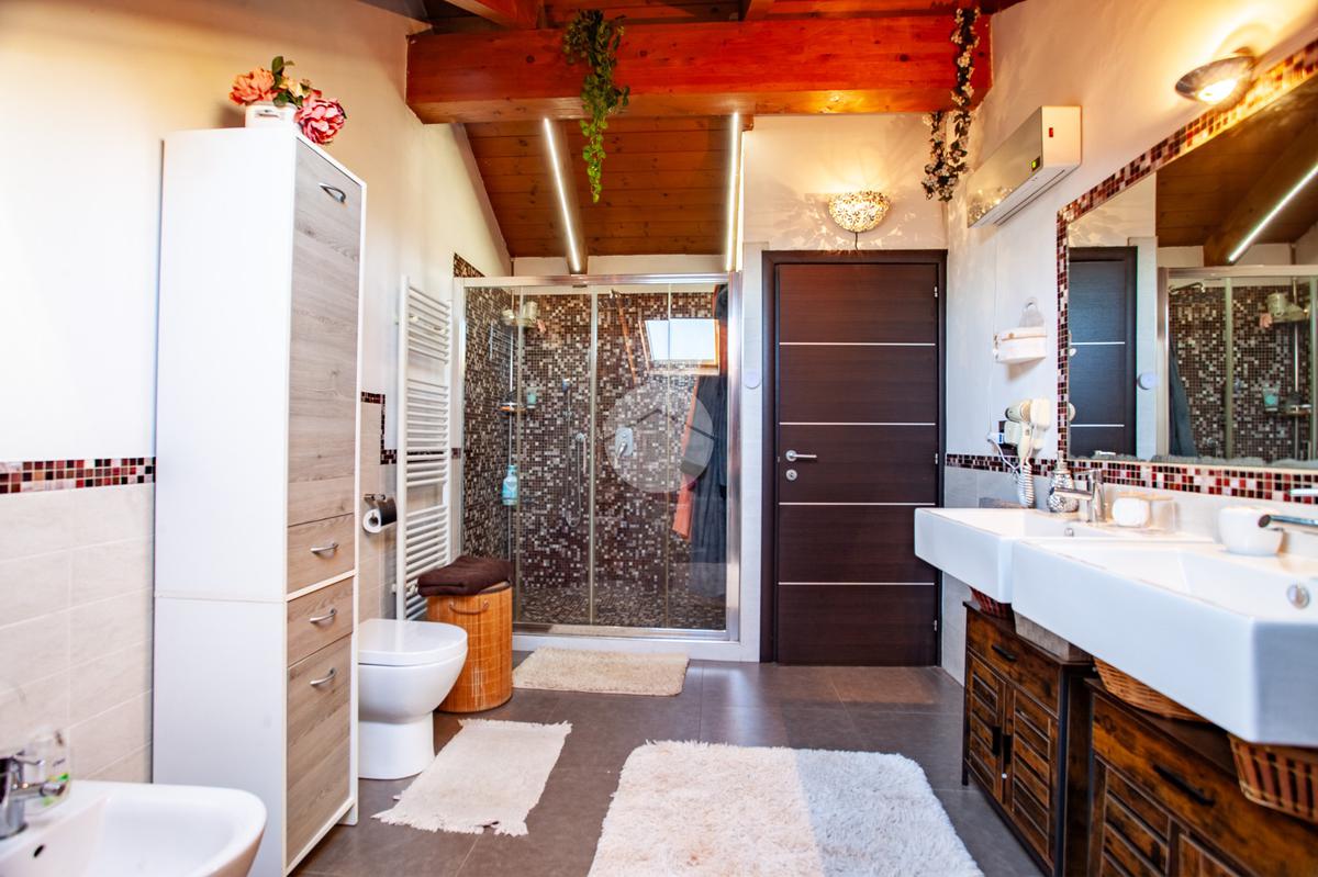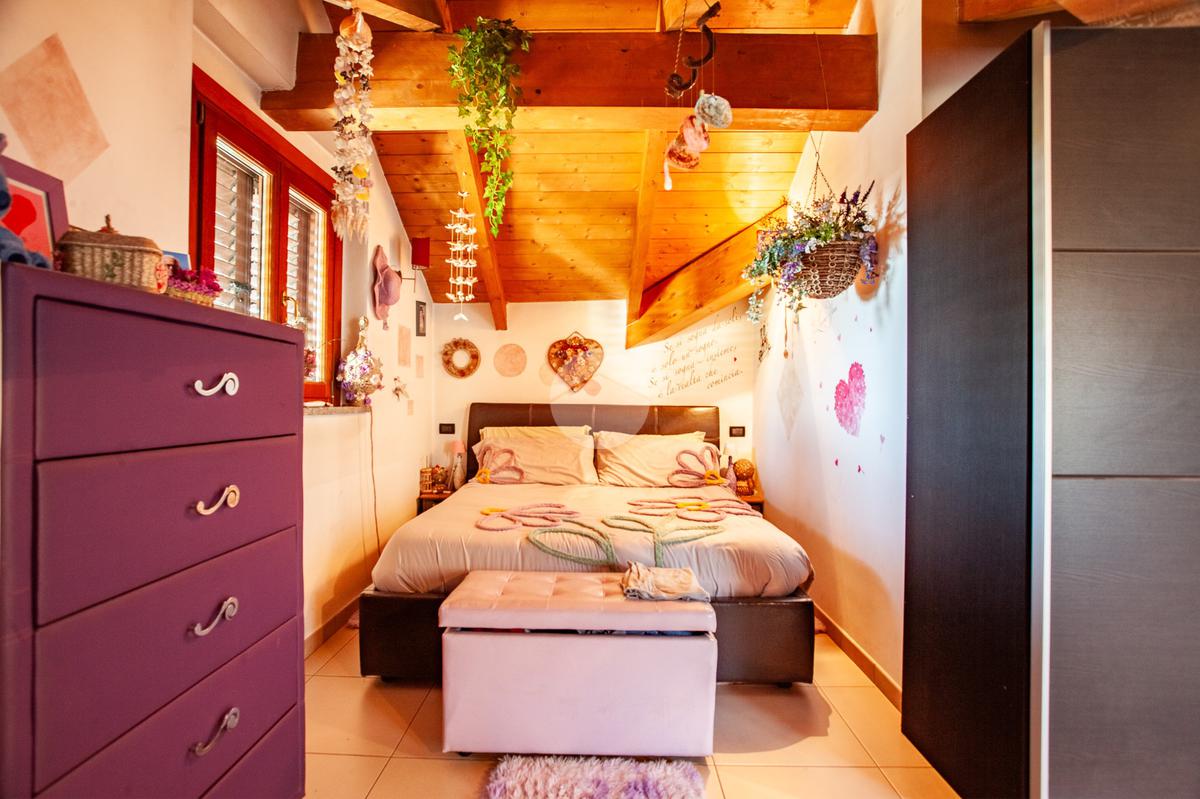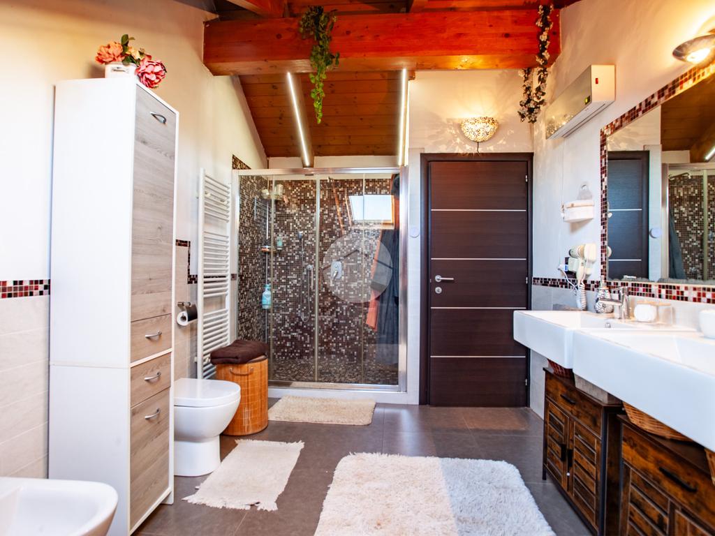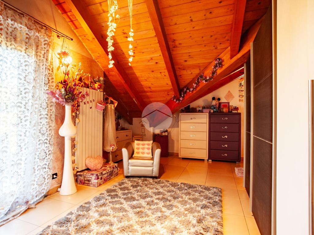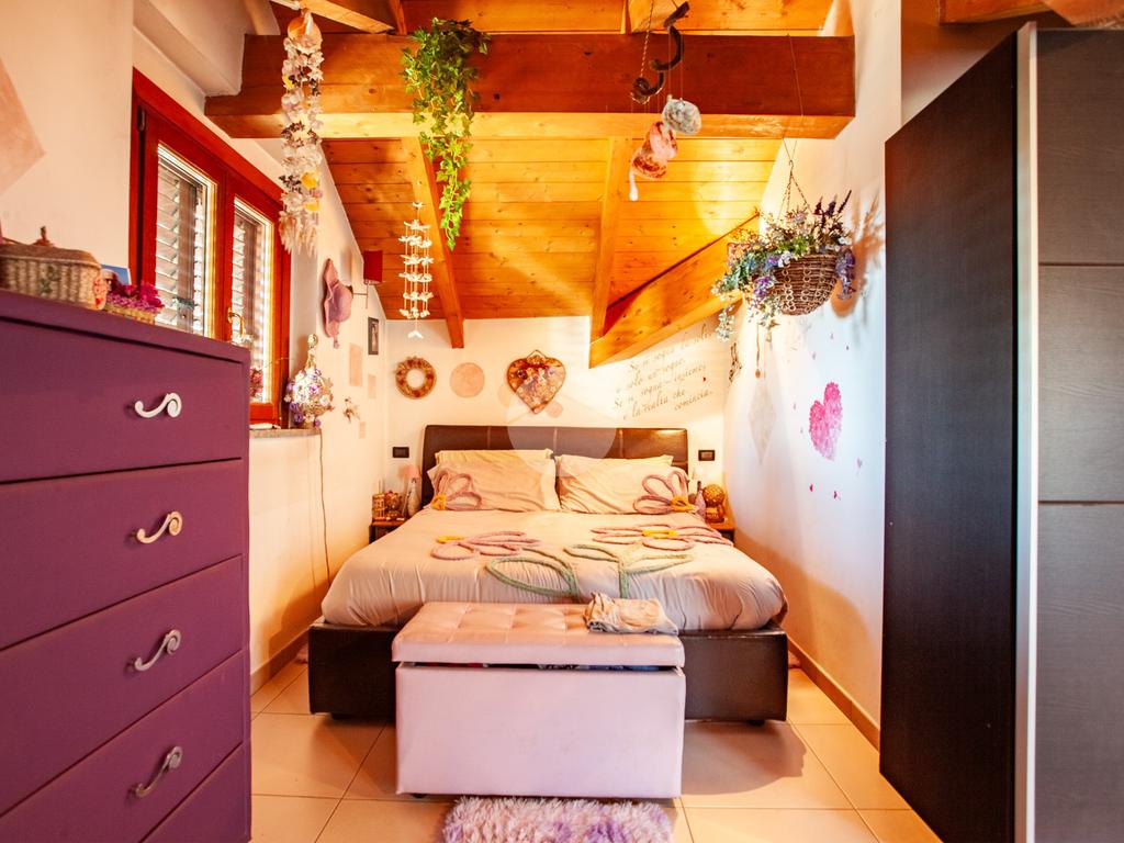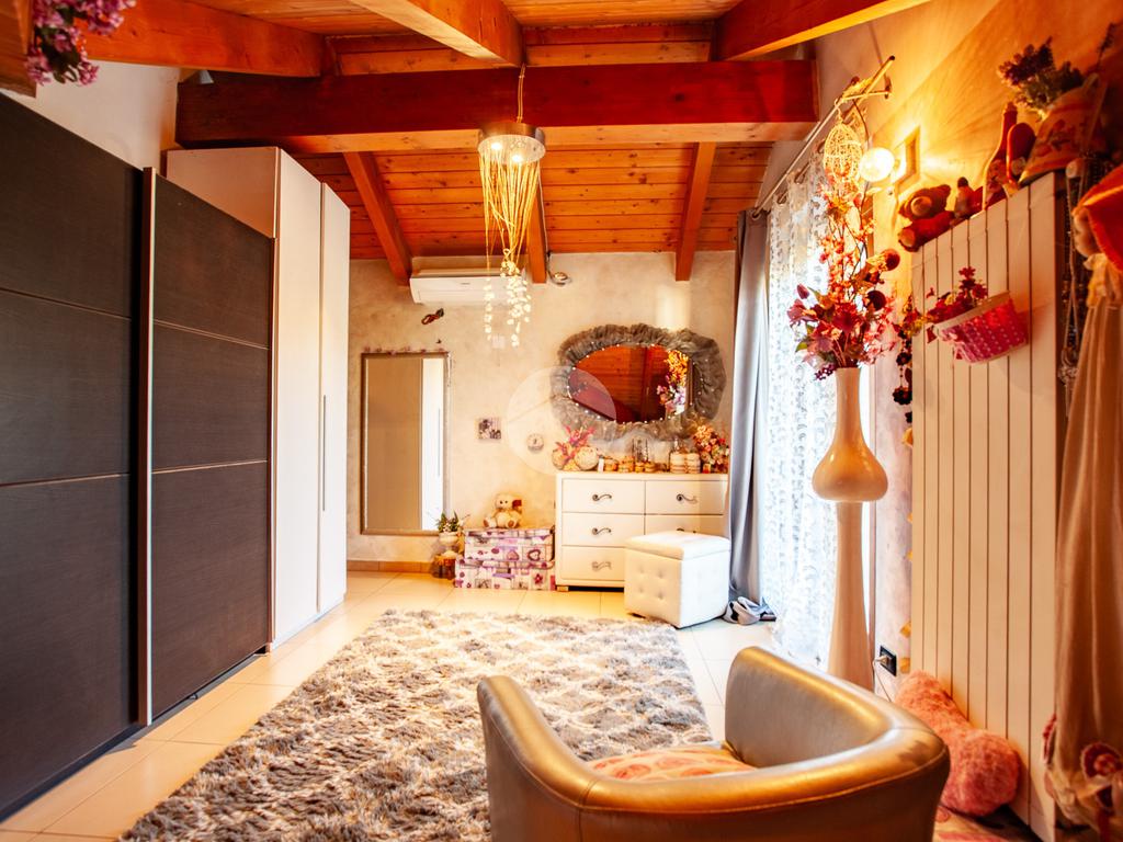 La scala interna accompagna al piano superiore, interamente abitabile, dove si sviluppa la zona notte con due camere da letto, un ulteriore vano versatile adibito a cabina armadio o studio e un elegante bagno dotato sia di vasca sia di box doccia.
