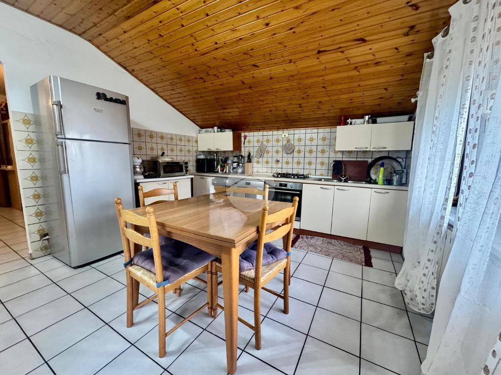 L’abitazione si apre su un disimpegno centrale che distribuisce armoniosamente tutti gli ambienti. Il salotto, di generosa metratura, risulta particolarmente luminoso e accogliente, mentre la cucina è abitabile e ben organizzata.