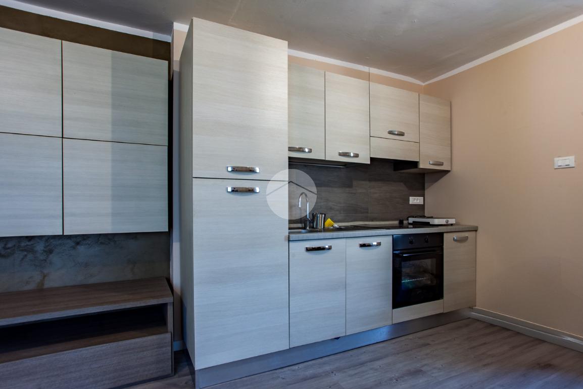 L’ingresso al piano terreno introduce in una zona living con angolo cottura, affiancata dalla camera da letto matrimoniale e dal bagno con piatto doccia.