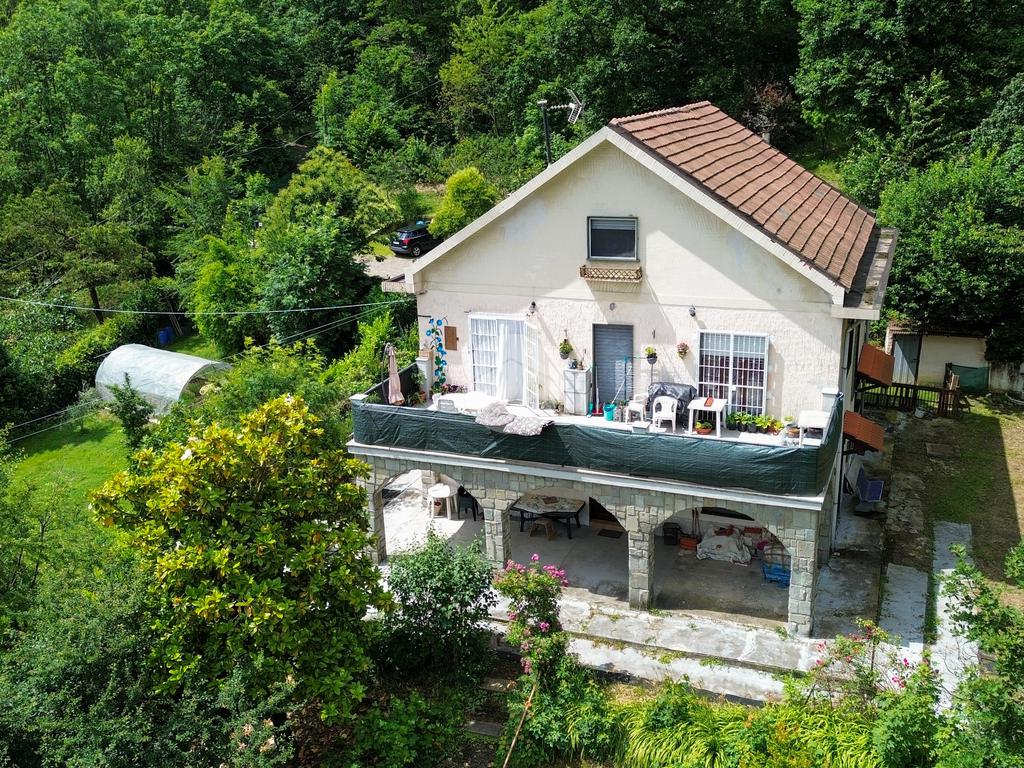 La zona giorno è completata da una cucina abitabile, mentre sul medesimo piano troviamo una confortevole camera da letto e un bagno finestrato dotato di box doccia. Al piano superiore si sviluppa la zona notte, composta da due camere di generose dimensioni e un secondo servizio. Completa la proprietà un terreno di circa 2.500 mq, arricchito da una comoda area adibita a parcheggio, ideale per chi desidera riservatezza, tranquillità e ampi spazi esterni.